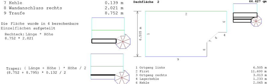 Verschmelzen Sie Dächer mit dem eingegebenen Projekt oder fügen Sie Gauben durch eine individuelle Positionierung ein. Das fertige Projekt kann anschließend gespeichert, per E-Mail gesendet oder ein dachdeckergerechtes Aufmaß als PDF erzeugt werden.