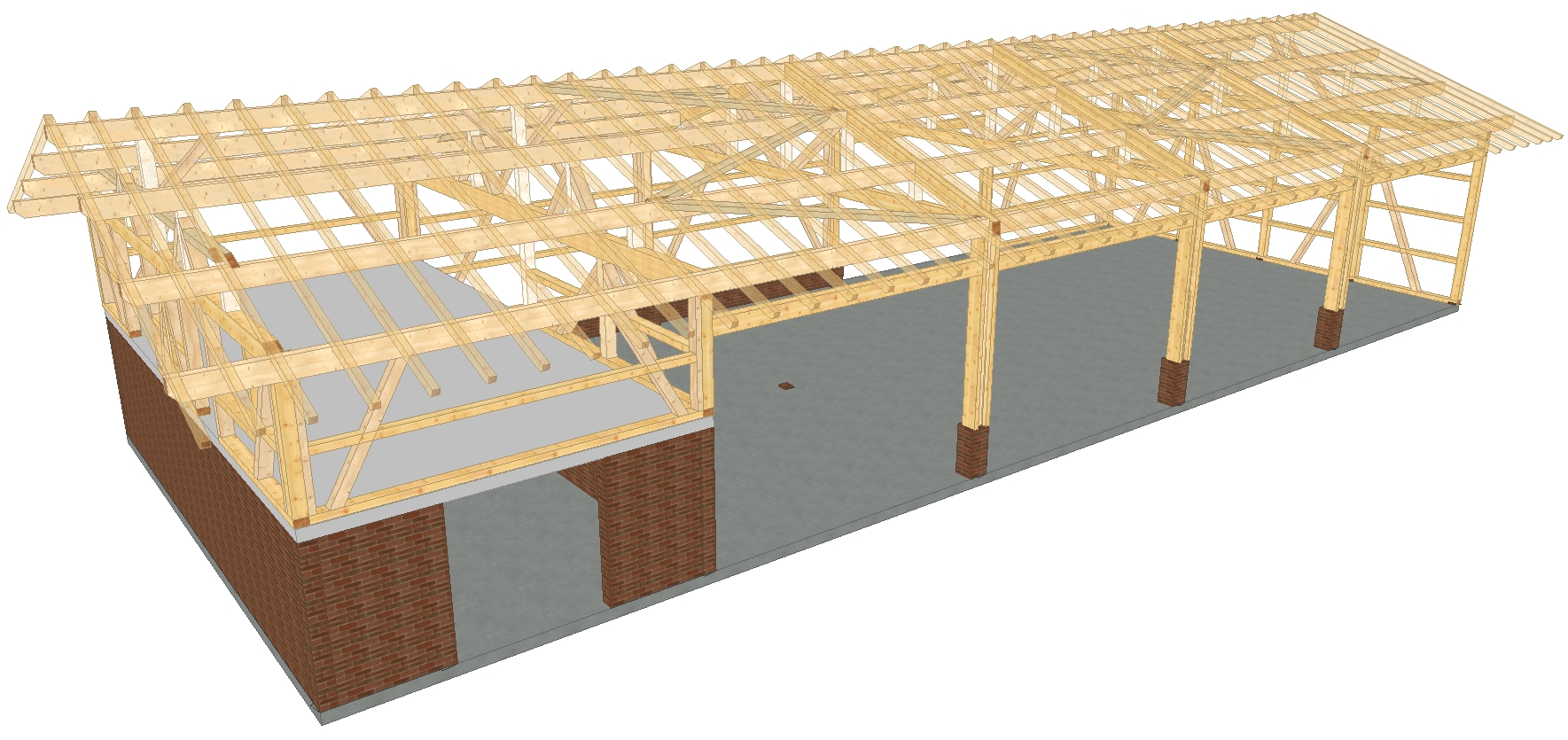 Planung und Fertigung von Dachstühlen, Carports, Pergolas, Holzterrassen mit Überdachung, freie Konstruktionen in Holz, Fachwerkwände (Tragkonstruktionen), Hallenbau, Wände mit Elementierungen.